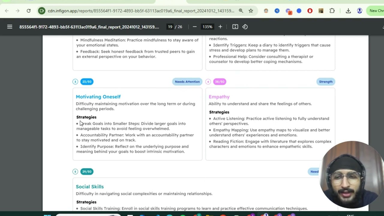 - Motivating Oneself (23): A low score suggests challenges in maintaining motivation. Breaking goals into smaller steps and working with accountability partners may be beneficial.