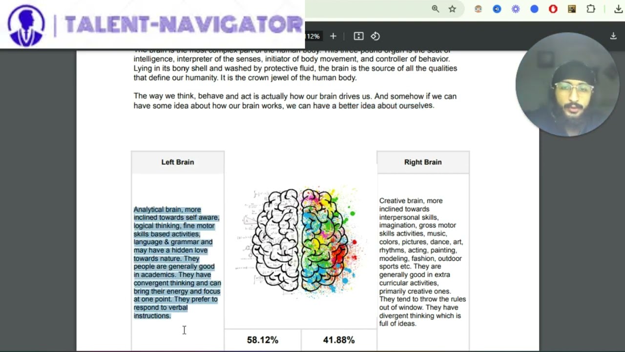 In assessments, you might find yourself somewhere on the spectrum of left to right brain dominance. For instance, a breakdown of 60% left brain to 40% right brain suggests a stronger analytical inclination than creative. Knowing where you fall on this spectrum can significantly influence how you approach learning and problem-solving.