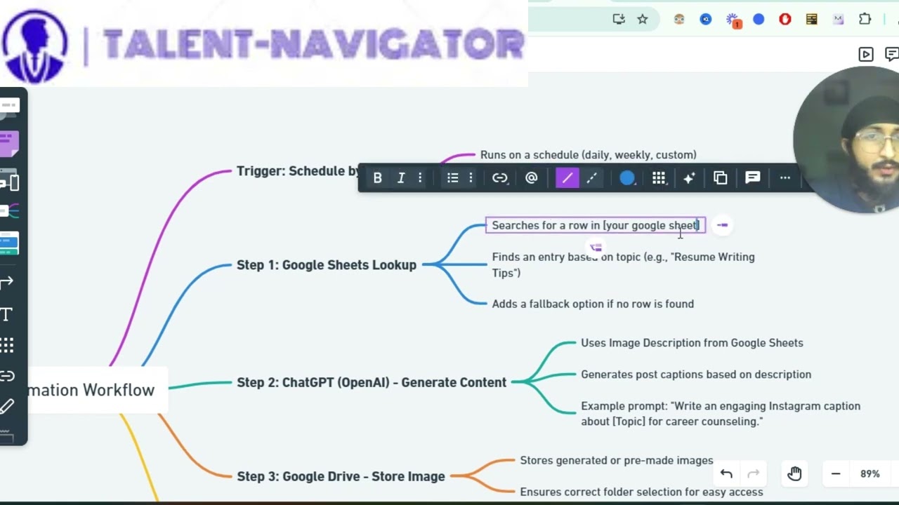 After finding the relevant topic in Google Sheets, we move to the content generation phase: