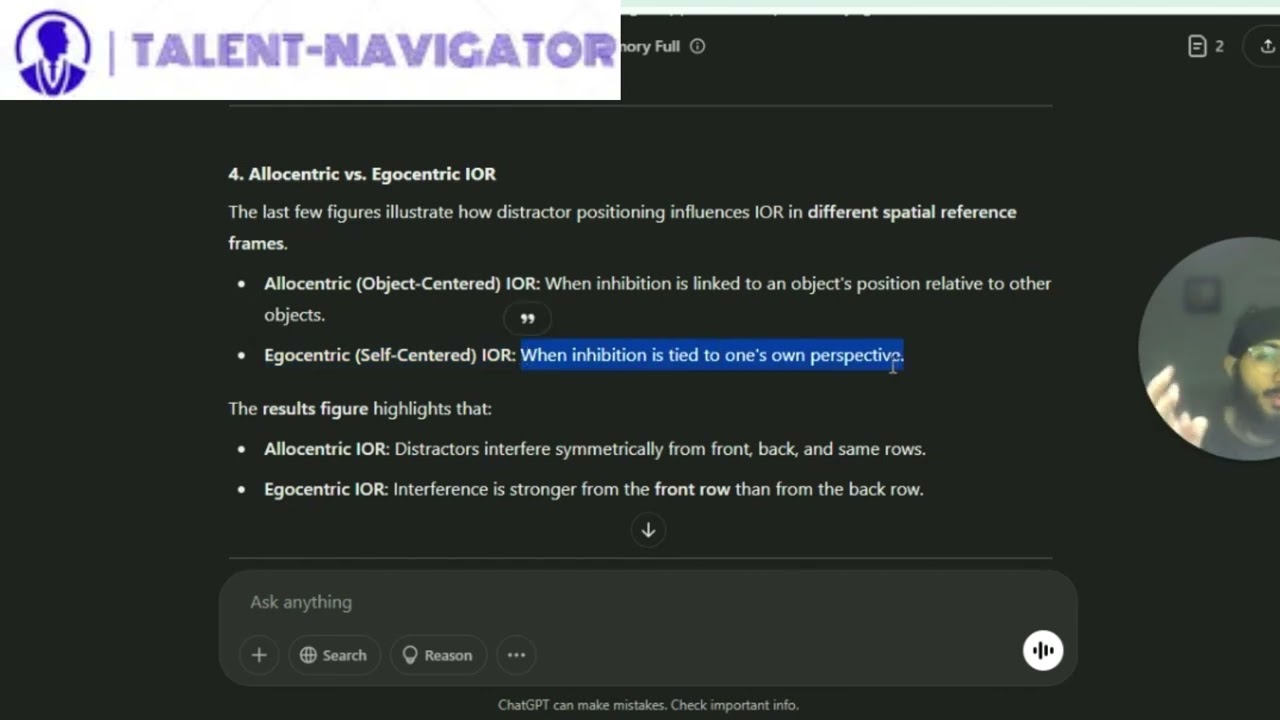 - Location-Based IOR: This operates under the premise that our brain has a tendency to ignore previously focused locations in future trials, prolonging reaction times at those spots.