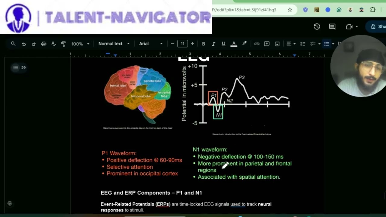 - N1 Waveform: Appearing later, at around 150 milliseconds, this negative peak is indicative of spatial attention and selective filtering, highlighting where our cognitive resources are focused.